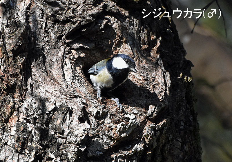 「シジュウカラ」が洞から出入りを繰り返していました。