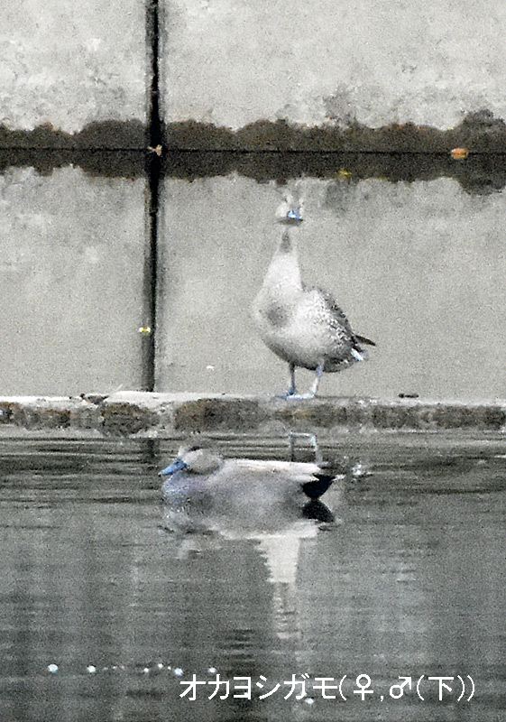 「ヒドリガモ」の群れの中に雌雄一羽ずついました。