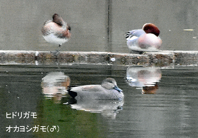 カルガモ,カイツブリ,カンムリカイツブリ,キジバト,