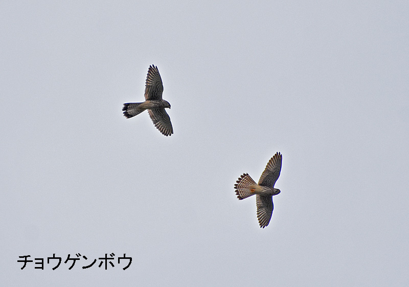「チョウゲンボウ」がランデブー飛行をしていました。