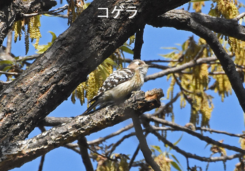 「コゲラ」が2羽で行動し,一瞬交尾したかのように見えたの