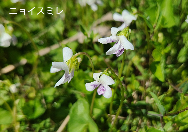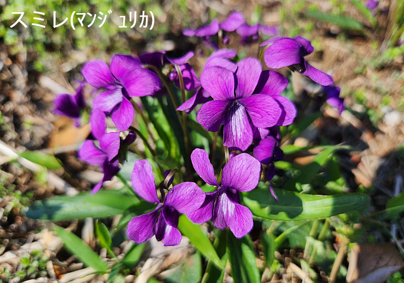 「スミレ(マンジュリカ)」と「ニョイスミレ」が咲いていました。