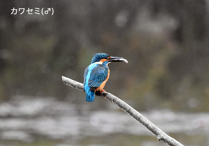 いつもの雌とは違う雄で,小魚を捕まえては元荒川の方