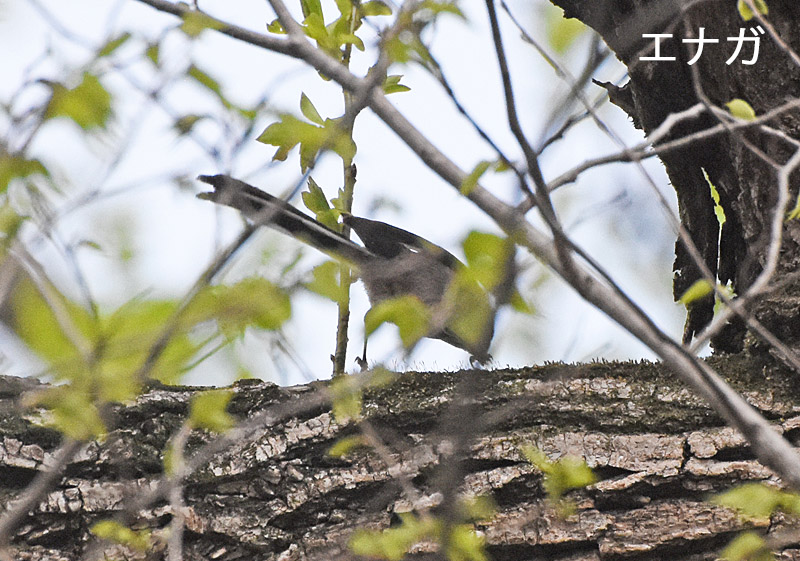 「エナガ」は巣材を運んでいましたが追いきれません。