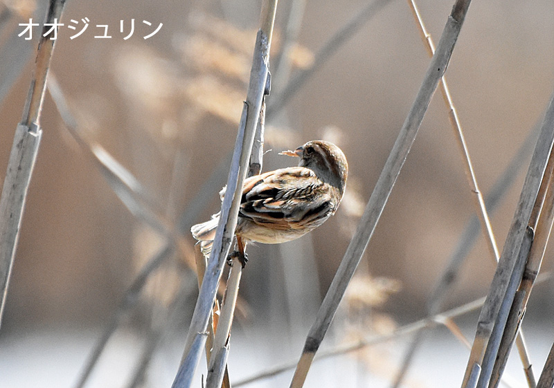 「オオジュリン」は葦を突いて虫を捕食していました。