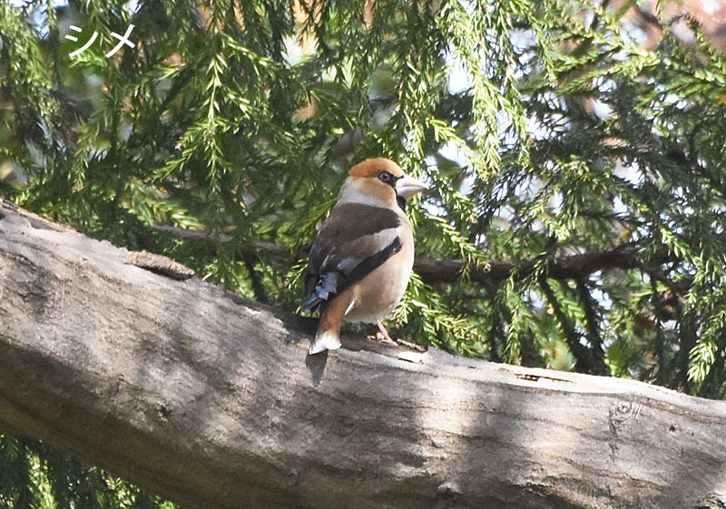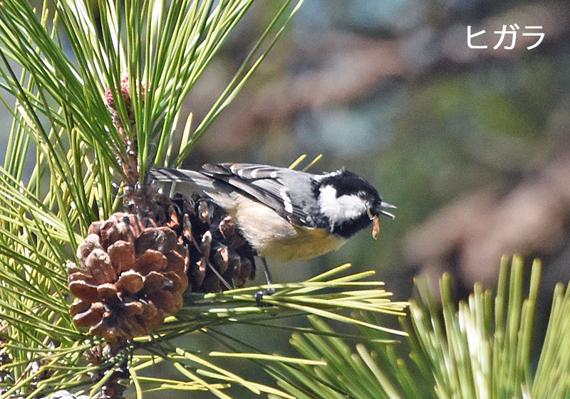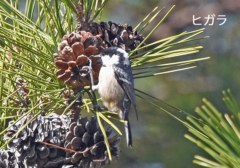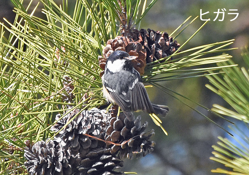 「ヒガラ」は残っていて,松かさ(松ぼっくり)の中の種子を