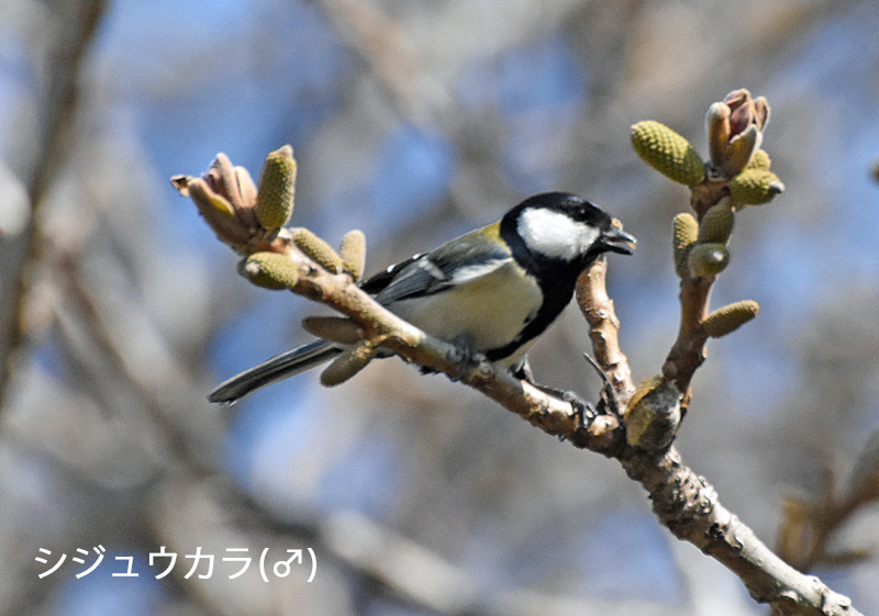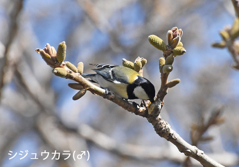 「シジュウカラ」や「メジロ」も群れではなく,単独あるいは