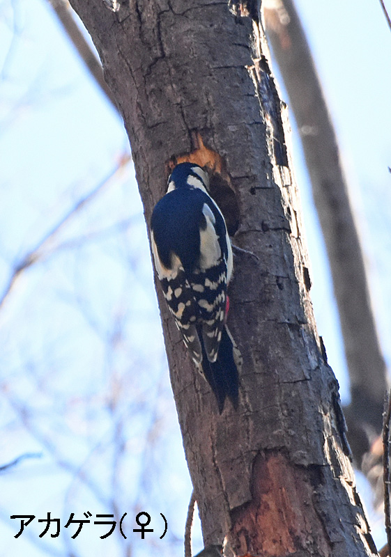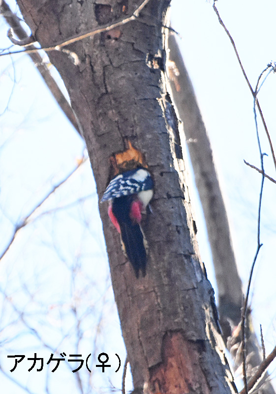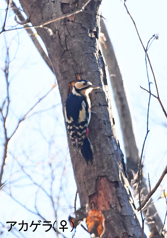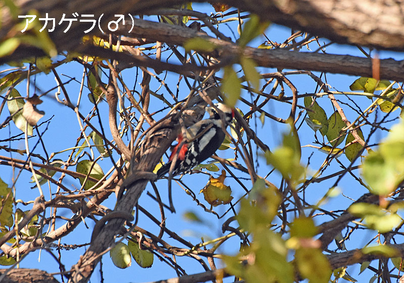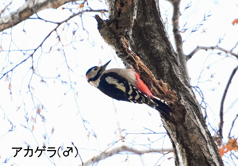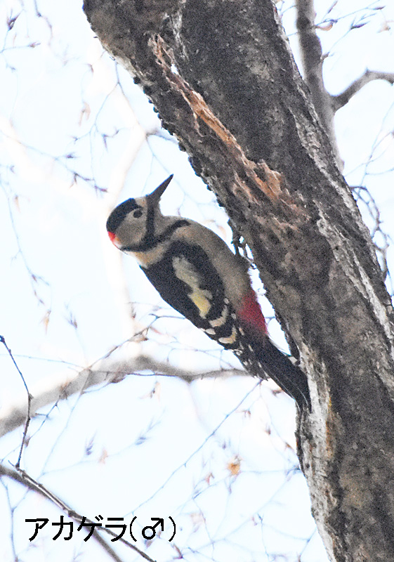 「アカゲラ(♂)」の観察ができました。今年は良く出会えます。
