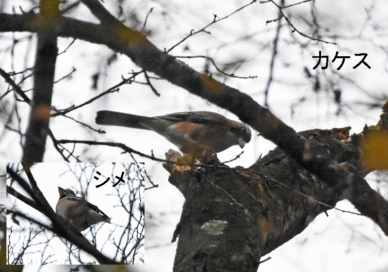 ここでは今冬初めて「カケス」と「シメ」の写真が撮れました。