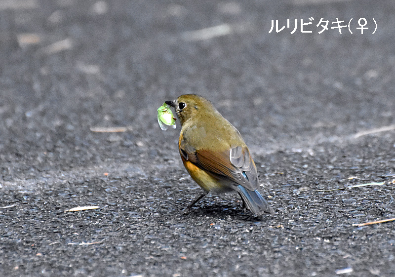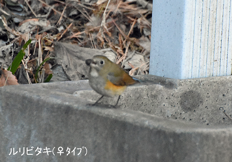 「ルリビタキ(♀)」は食事のためか出てきてくれました。