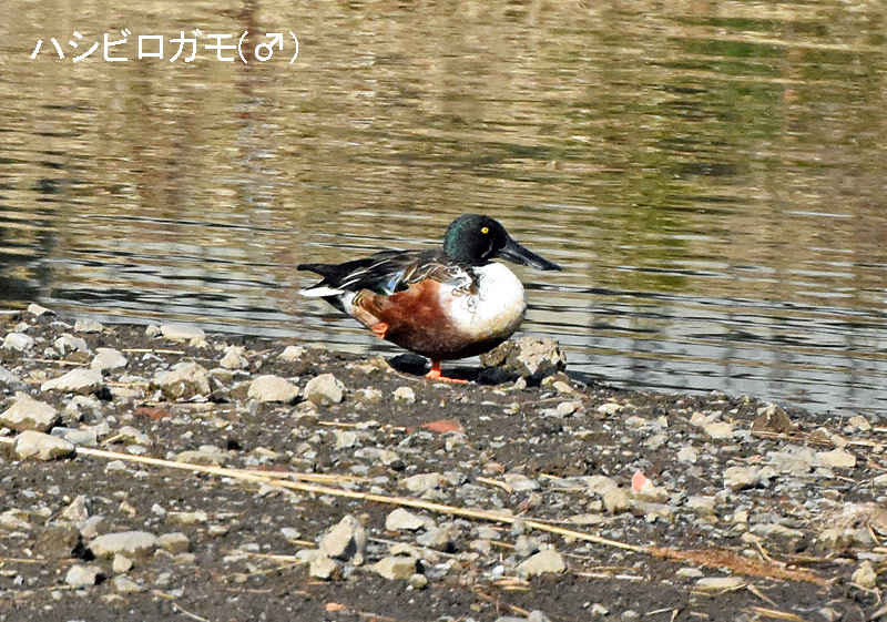 元荒川では久しぶりに「ハシビロガモ」を観察しました。