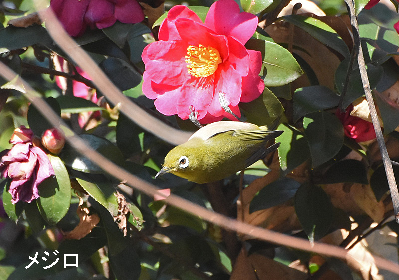 「メジロ」もせっせと椿の蜜?を食べにきています。