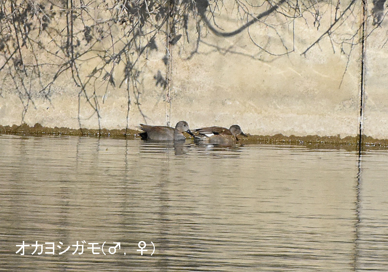 カルガモ,コガモ,カイツブリ,キジバト,アオサギ,